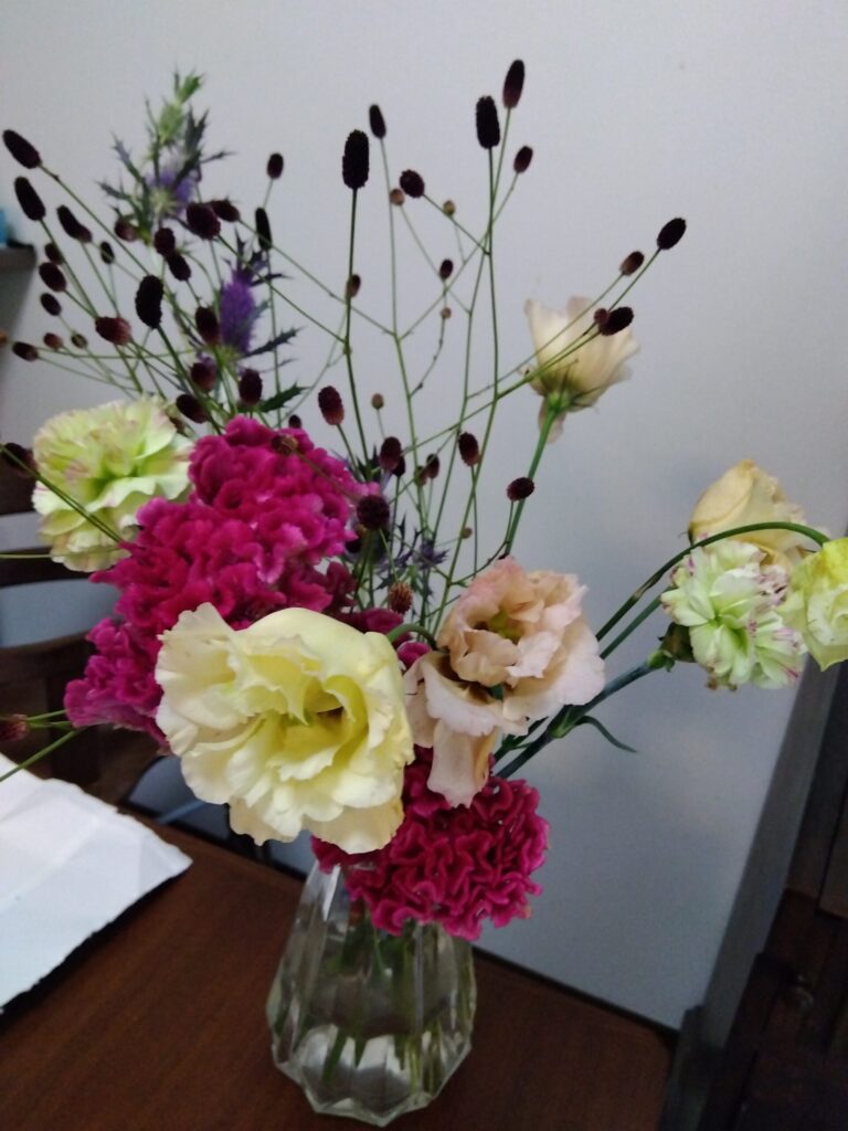 息子たちからお花をプレゼントされると義母はとても喜んでくれたけど、またなんとも渋いラインで花束ができました